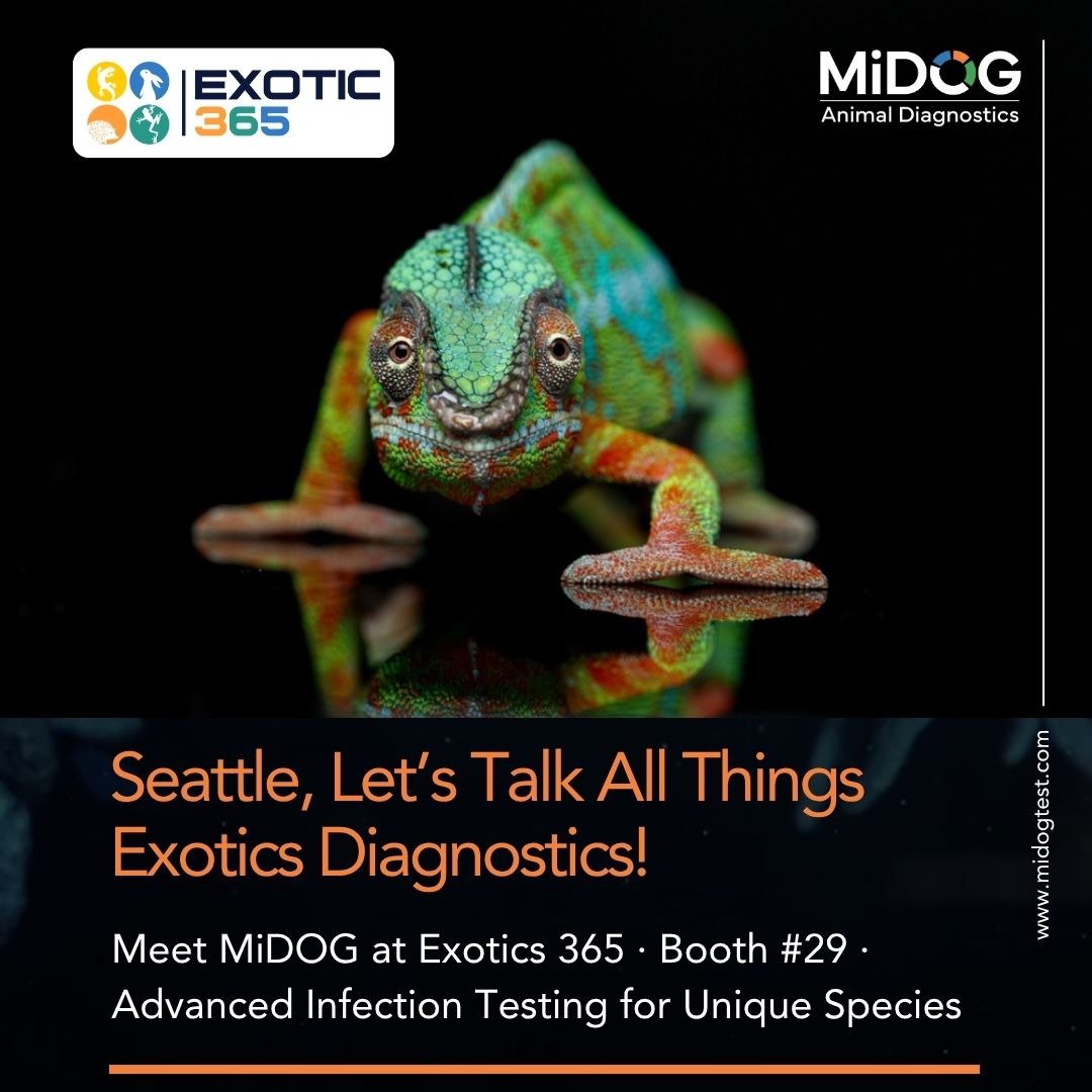 MiDOG is excited to be exhibiting at Exotics 365, the premier conference dedicated entirely to the care and medicine of exotic species. Join us August 24–28, 2025 at The Westin Seattle, and discover how our cutting-edge diagnostics are redefining what’s possible for exotic animal health.