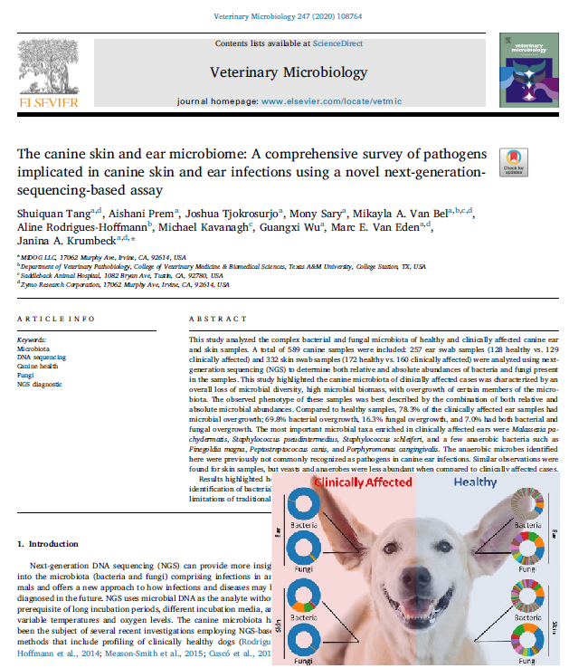 - Largest dog cohort to date analyzed for both the bacterial and fungal microbiota in healthy and diseased skin and ears.