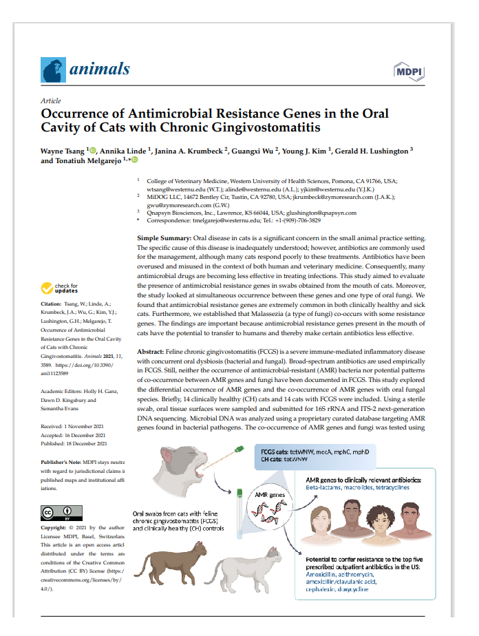 Animals | Free Full-Text | Occurrence of Antimicrobial Resistance Genes in the Oral Cavity of Cats with Chronic Gingivostomatitis (mdpi.com)